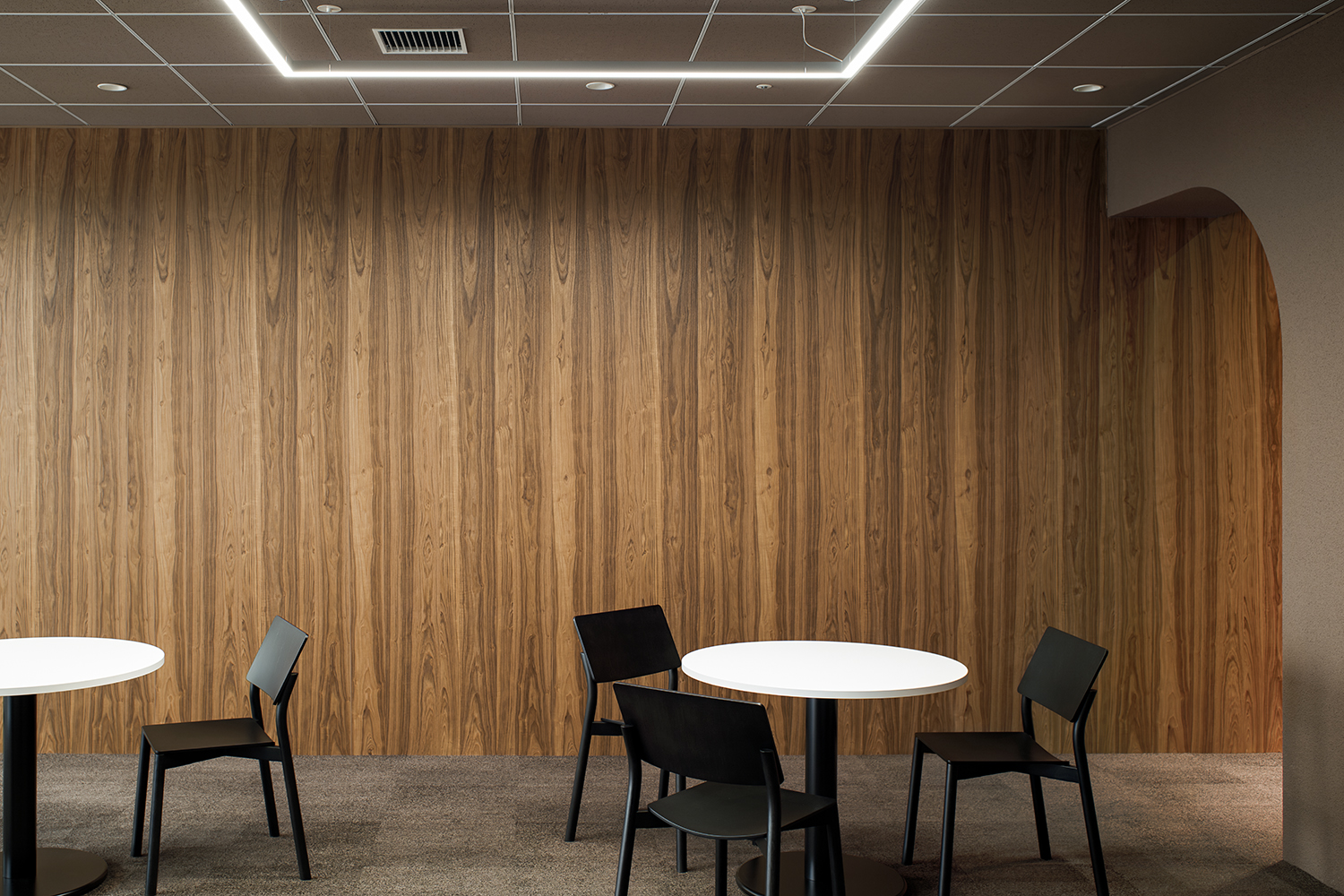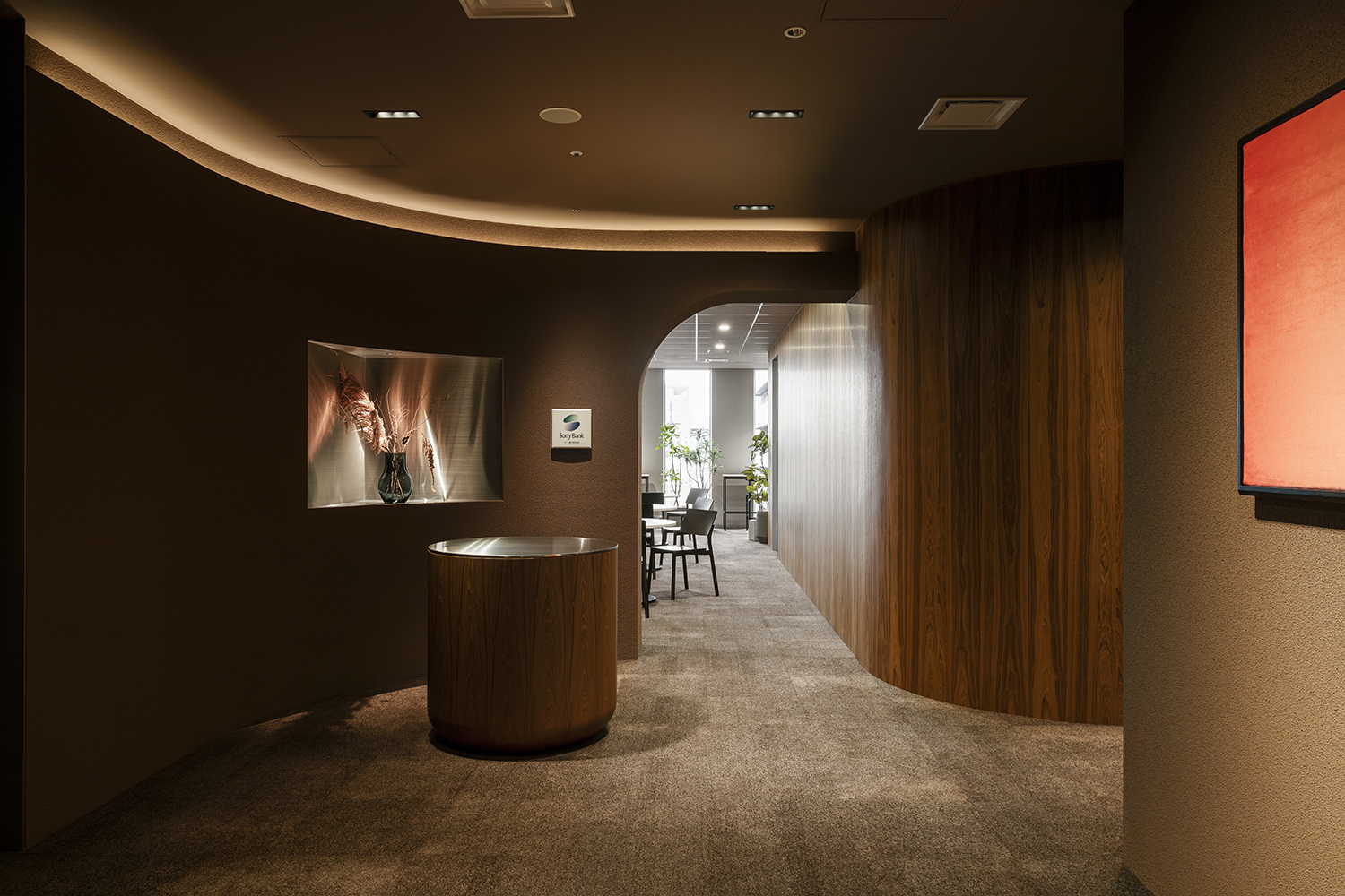 The furniture layout focuses on facilitating conversation. Comfortable face-to-face seating ensures an appropriate sense of distance while encouraging natural dialogue and interaction. The entrance—serving as the “face” of the lounge—was designed with a refined expression to offer visitors a sense of trust and reassurance.