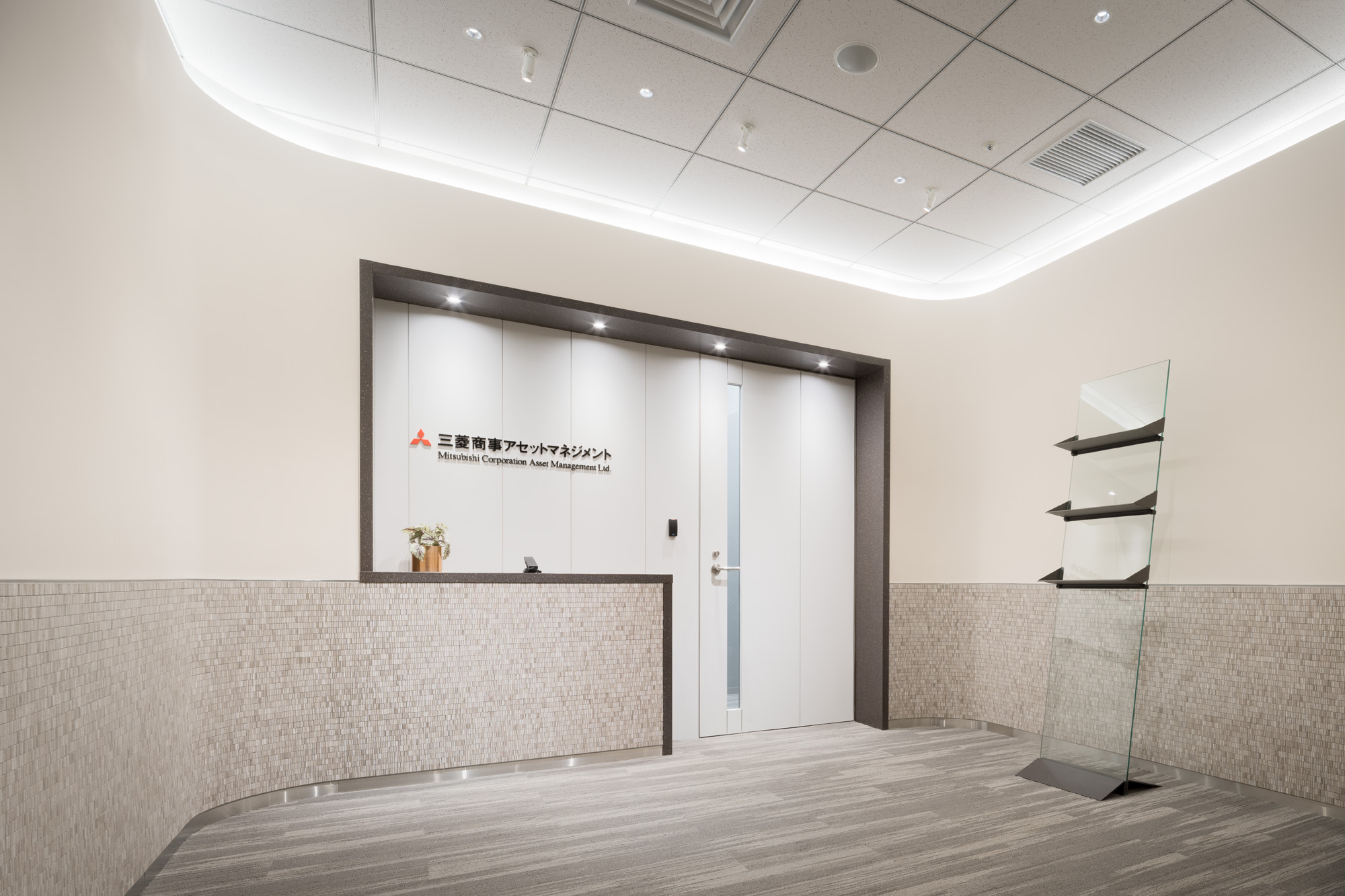 エントランスは、金融機関として相応しい洗練された明るい意匠を表現。海外からの多くの来客に対応できる格調高いボードルームを提案した他、各会議室では、家具と壁の意匠と連動したアートワークを提案。部屋ごとに豊かな表情を見せる来客会議室を表現した。