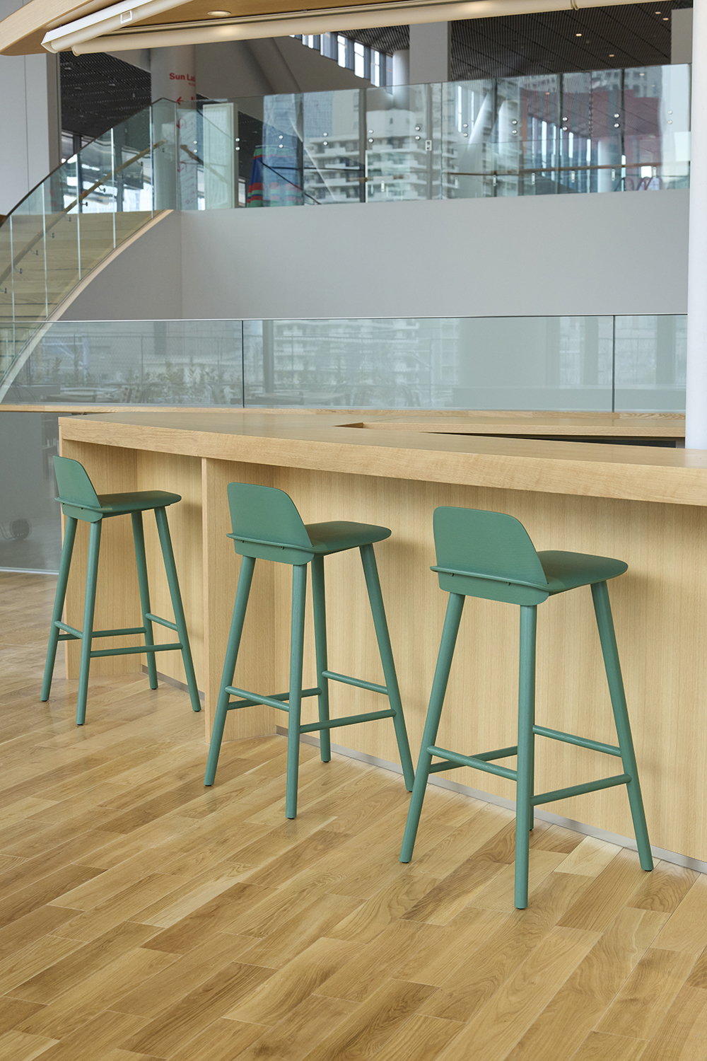 インターオフィスは本プロジェクトにおいて、コンセプト形成の段階から参画し、空間および使い勝手に関する提案、ヒアリング、デザインコンセプトに基づいた家具選定プロセスの構築、レイアウトに関するアドバイス、さらには納品に至るまで、包括的にサポートしました。また、運営事務室にはオリジナルの造作家具を制作・納品しています。