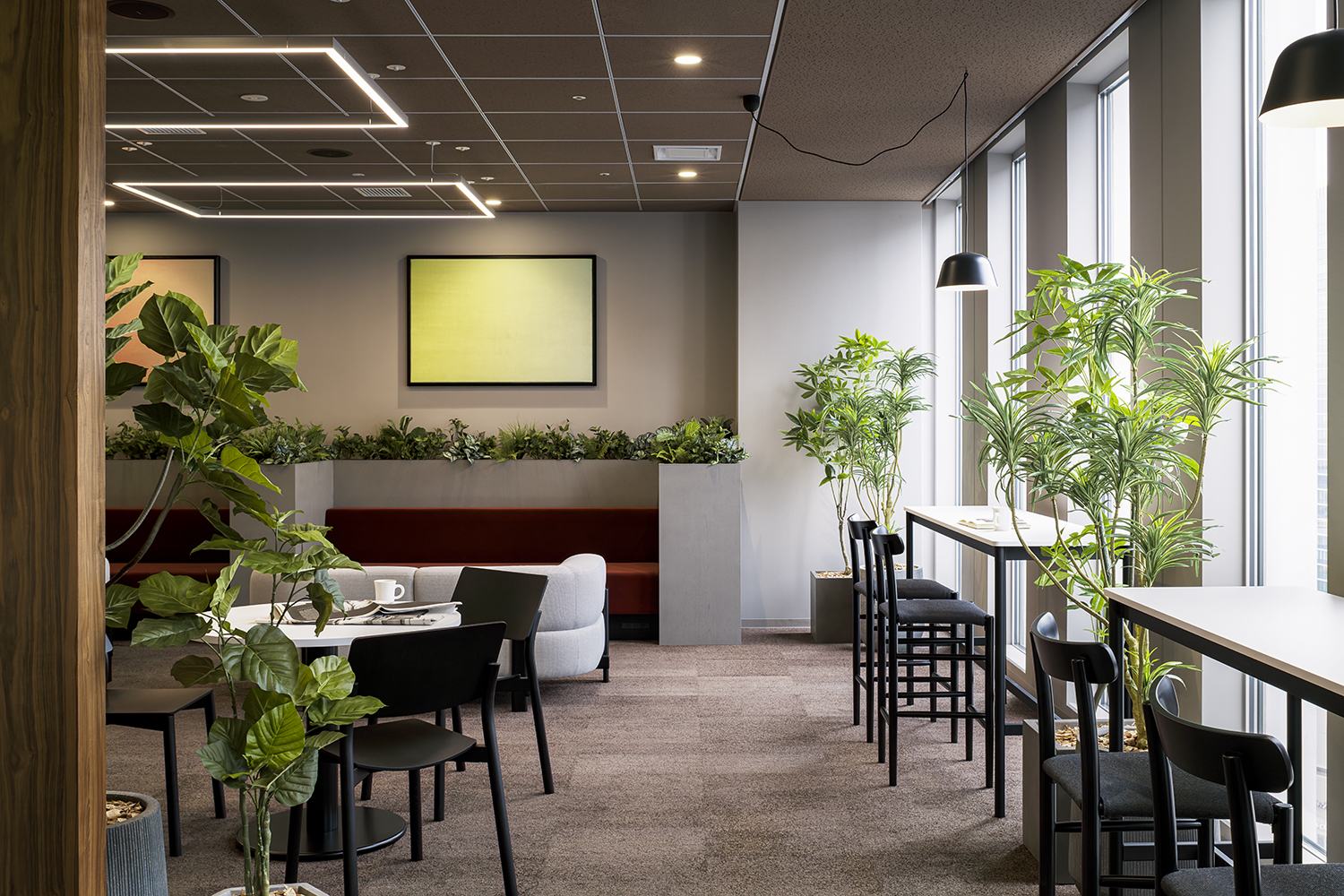 都市の中心にありながら、内側には静かな時間が流れるこのラウンジは、来訪者が心地よく過ごし、会話や体験がより豊かになる“ひとときの場所”として機能する空間となっています。